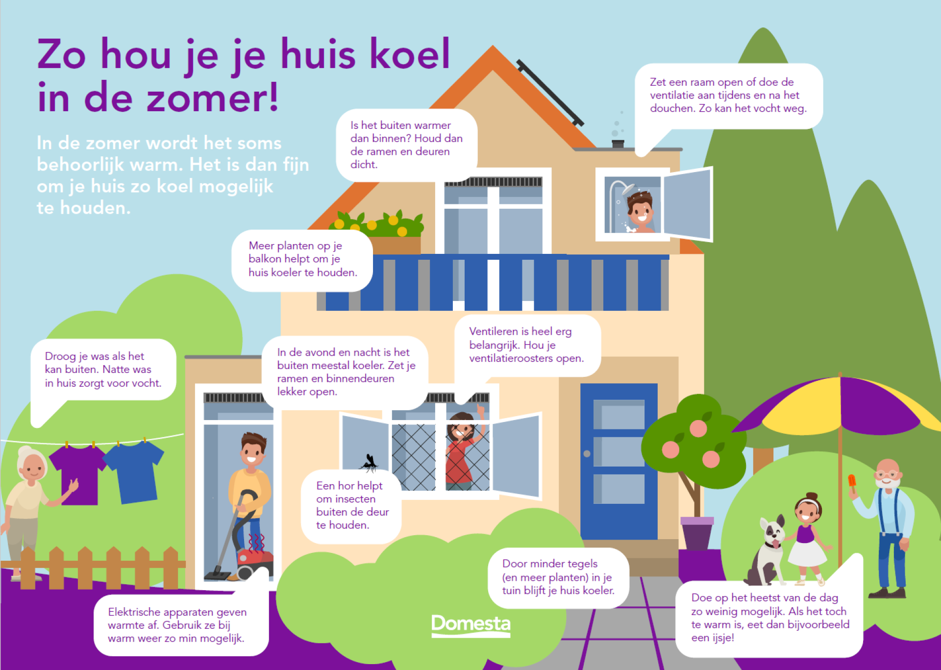 In de zomer wordt het soms behoorlijk warm. Het is dan fijn om je huis zo koel mogelijk te houden. Hieronder staan wat tips:
