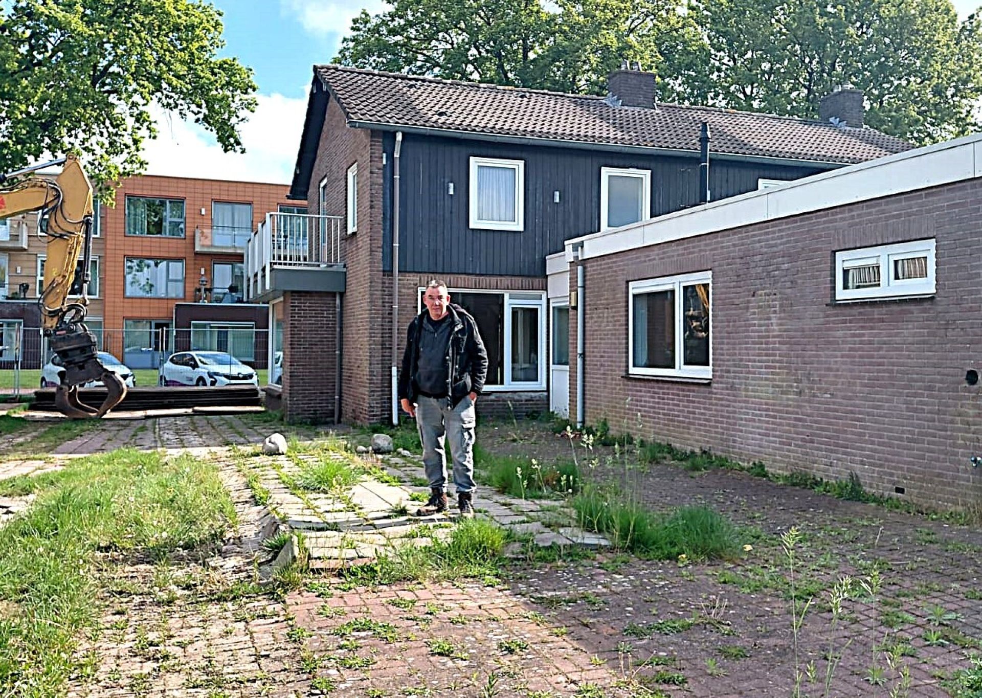 Er is nog net tijd voor Arjan om bij zijn oude woonplek te kijken. De dag erna wordt begonnen met de sloop van de 2 keer 2-onder-1-kap huizen. Onze senior projectleider Jan Herm werkt mee aan de plannen voor en de bouw van de nieuwe huizen die er komen: “De huisjes nog een keer renoveren was echt te duur, want ze waren er inmiddels slecht aan toe. Dus hebben we besloten om ze weg te halen. Er komt een rij van 5 mooie huizen voor terug. Die gaan we duurzaam bouwen. Elk huis krijgt ook weer een fijne tuin met een berging achterin.”