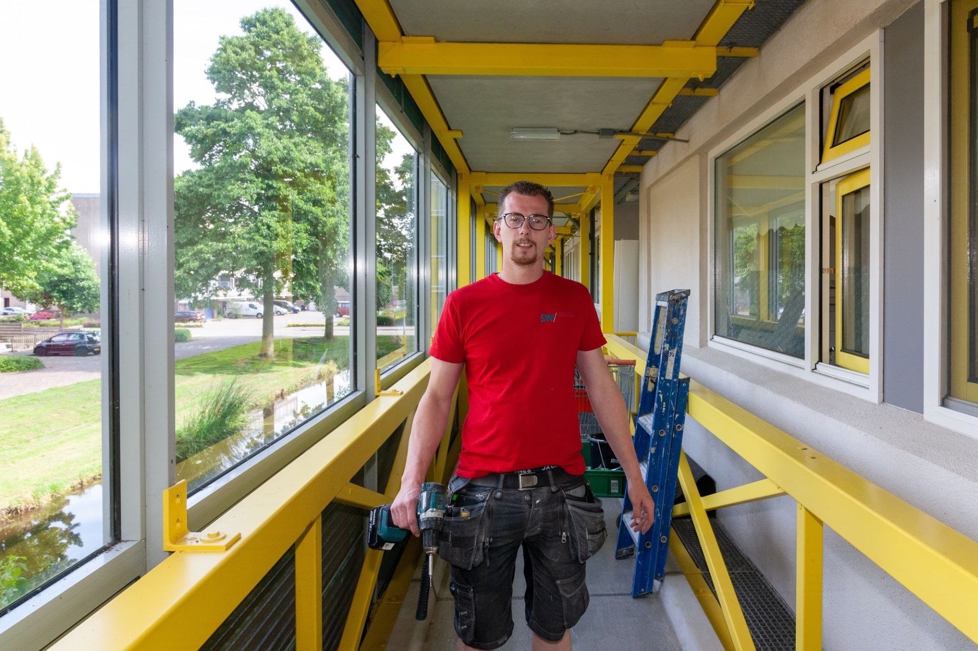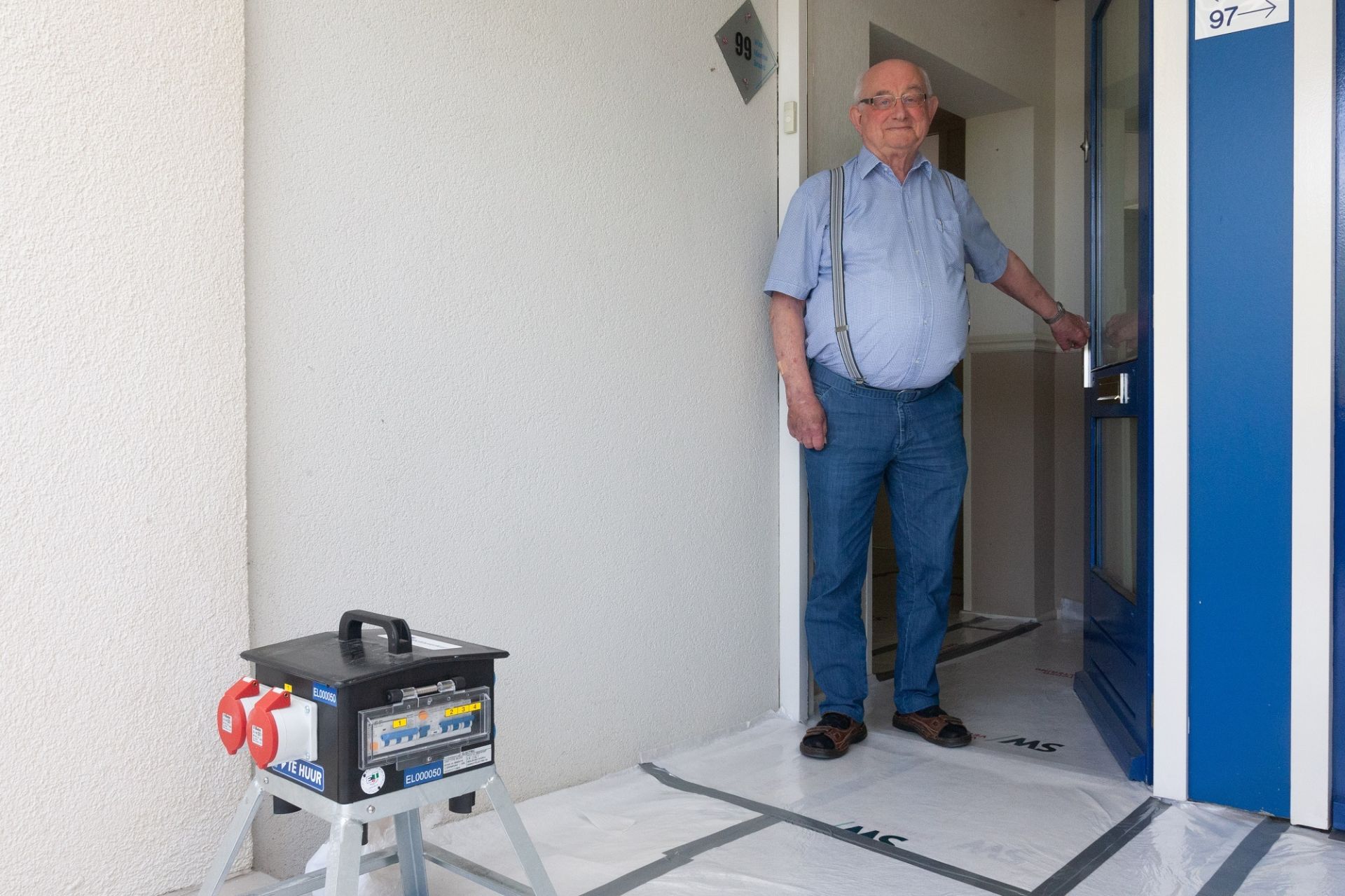 De gemiddelde leeftijd van de bewoners in De Buizerd is 78. Dat was even wennen voor de bouwers”, zegt Wim. “Ze hebben veel ervaring met renoveren, maar minder met oudere mensen, haha! Gelukkig is er veel overleg met ons en konden we bijvoorbeeld aangeven dat er een toiletvoorziening in ieders huis moest komen. Je kunt van mensen op leeftijd niet verwachten dat ze midden in de nacht naar een wisselwoning lopen. Nu heeft iedereen een mobiel toilet thuis. Dat wordt dagelijks opgehaald en weer schoon afgeleverd. Heel fijn!”