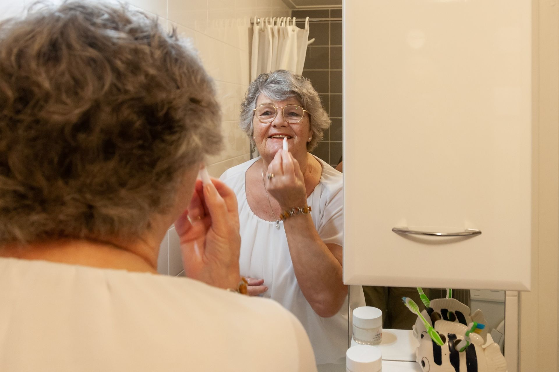 Het huis van Trijntje Timmermans en haar man is net klaar. Ze is blij dat het achter de rug is. “Al die verschillende mensen over de vloer, daar word je doodmoe van.” Over het eindresultaat is ze erg tevreden. “De badkamer is echt prachtig! Helemaal blij ben ik met de nieuwe wasbak. Die is groter en een stuk hoger. Wat een rijkdom, zei ik tegen mijn man. Ik heb staan zingen onder de douche, zo blij was ik!”