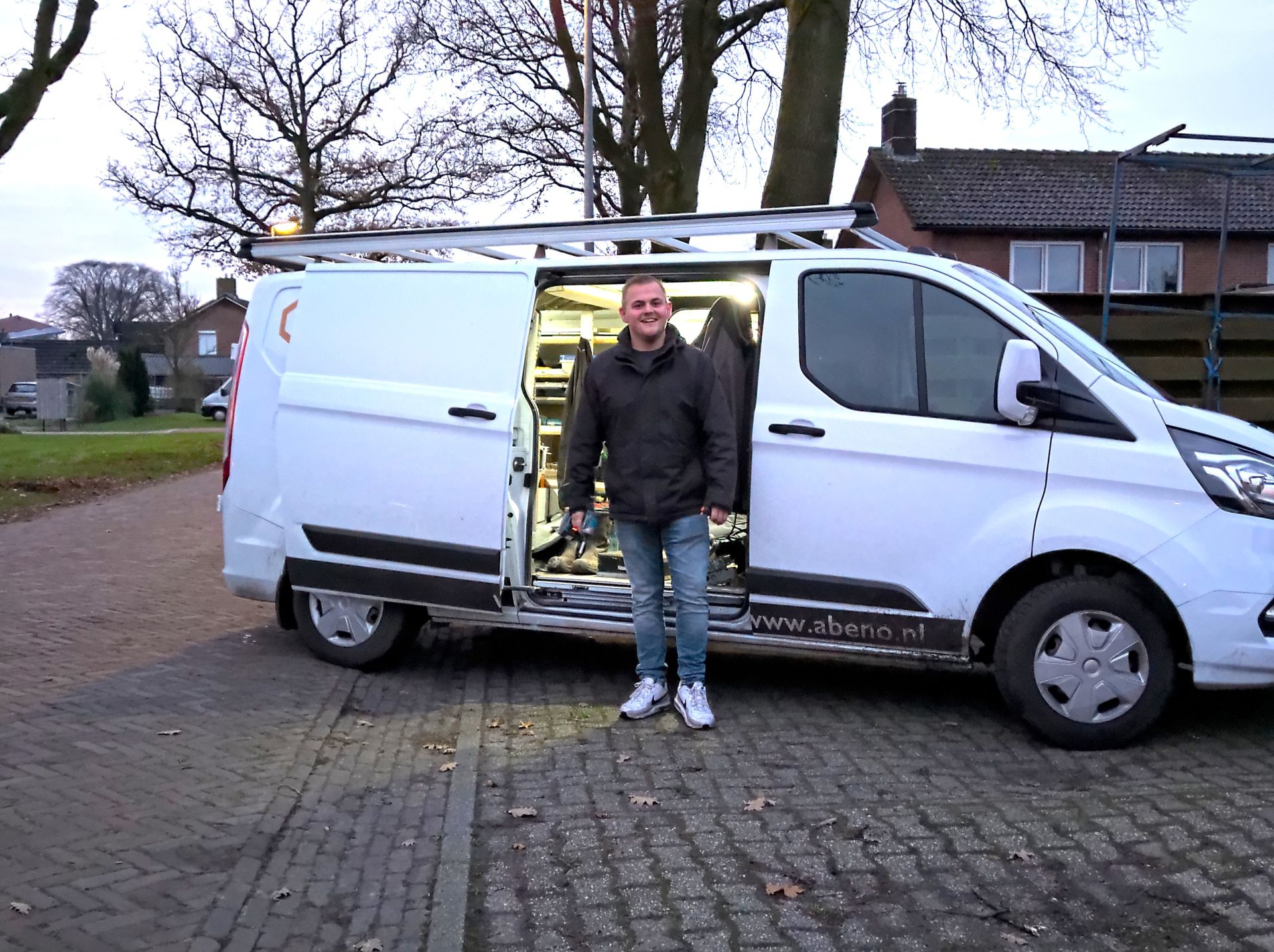 “Zullen we naar binnen gaan?”, vraagt Mike. Want de meterstanden moeten worden opgenomen en op de deuren komen nieuwe sloten. Dennis, die met zijn werkbus is gekomen, kan meteen aan de slag. Natuurlijk heeft hij als timmerman het goede gereedschap bij zich om de sloten uit de deuren te schroeven.