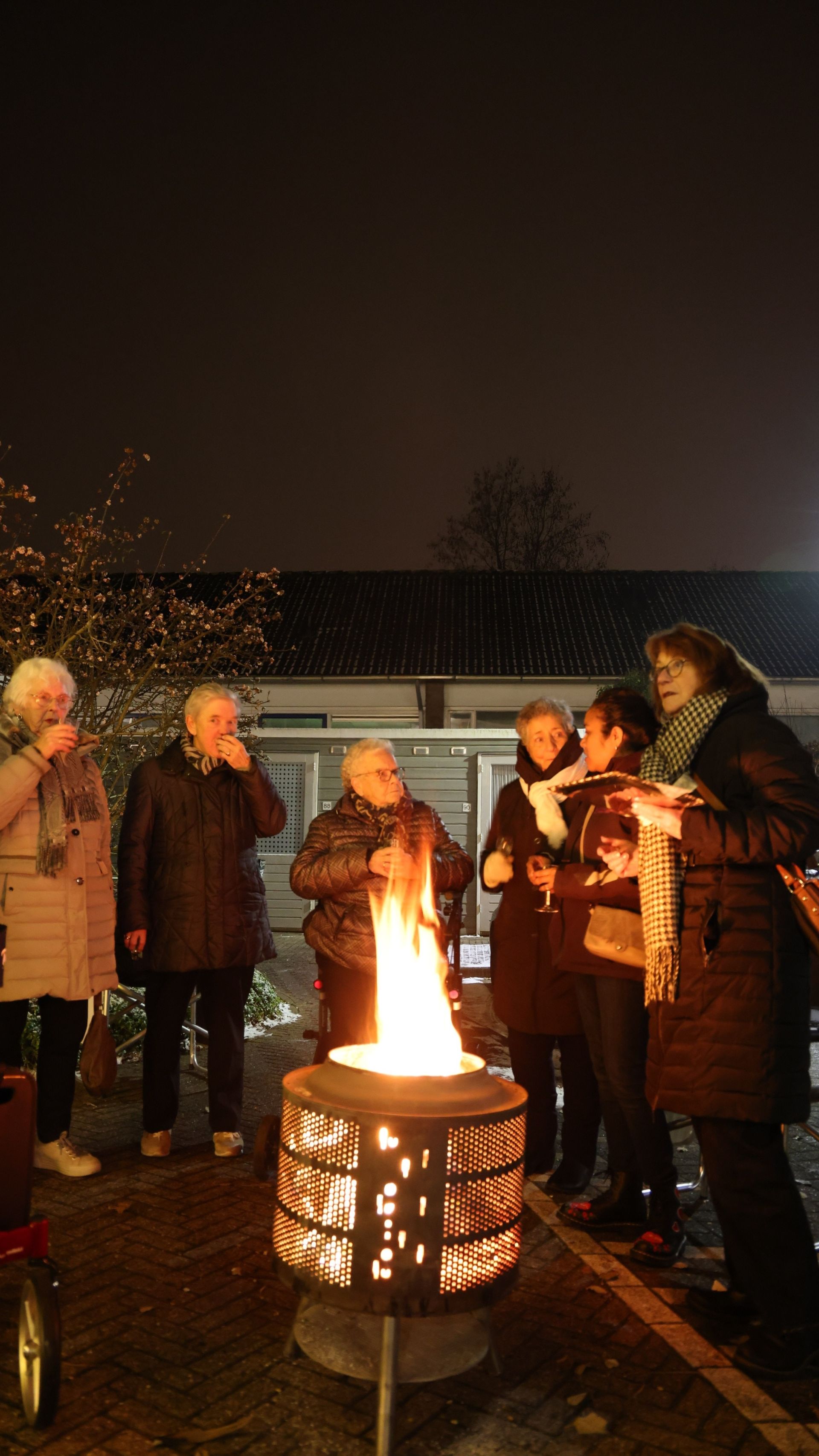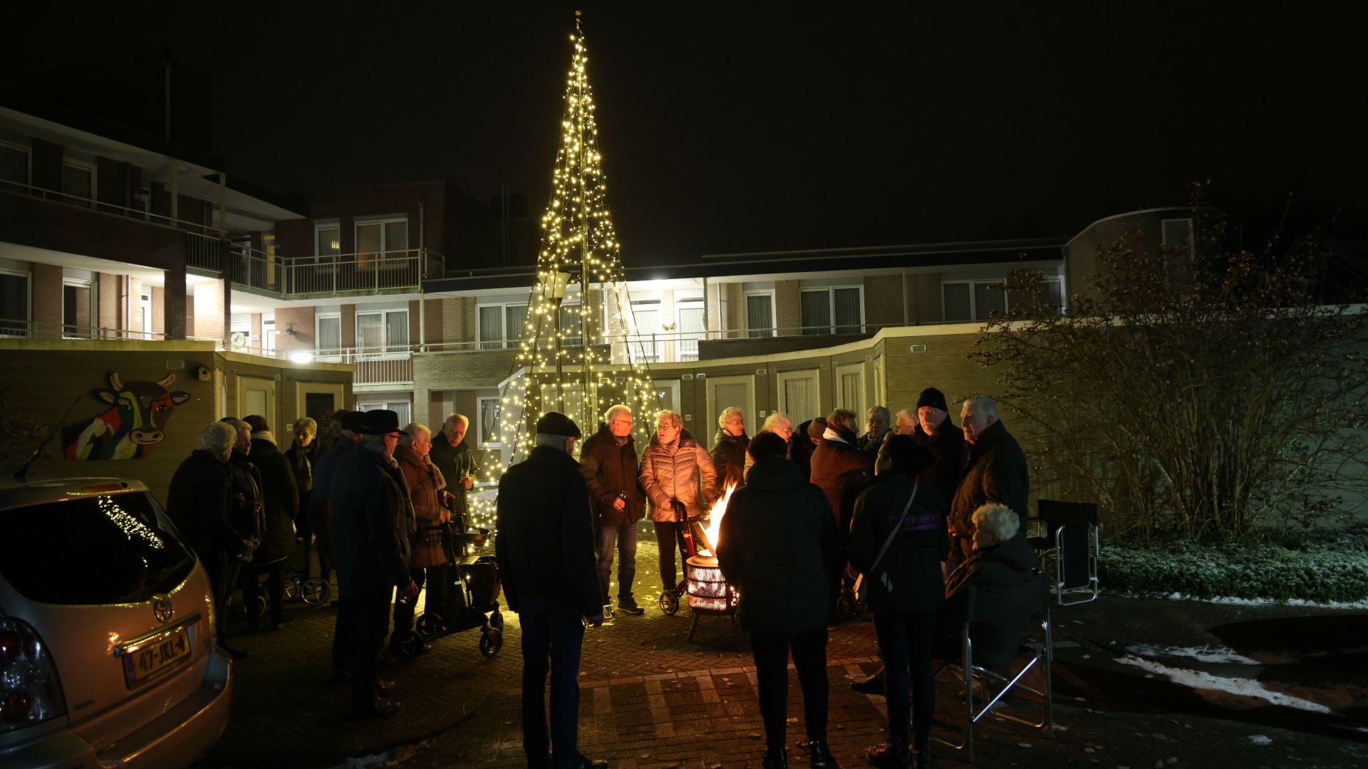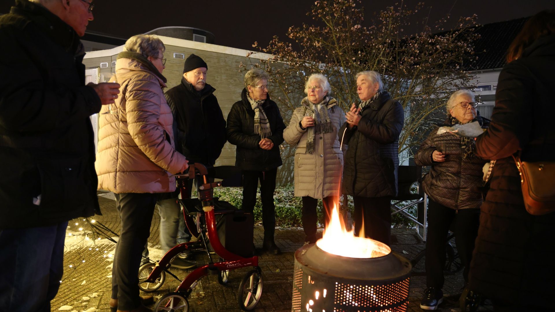 Afgelopen vrijdagavond was het zover. De bewonerscommissie maakte er een leuke en gezellige happening van. De kerstboom werd door de heren Piet en Joop opgetuigd. De dames Annie en Riet zorgden voor de heerlijke warme Glühwein en hapjes. Het was -2 buiten (brrr, echt koud) maar daar merkten we niet veel van, want Piet zorgde ook voor een mooi vuurtje in de vuurkorf. Zoveel warmte van het vuurtje én van de bewoners, wat voelde dat fijn!