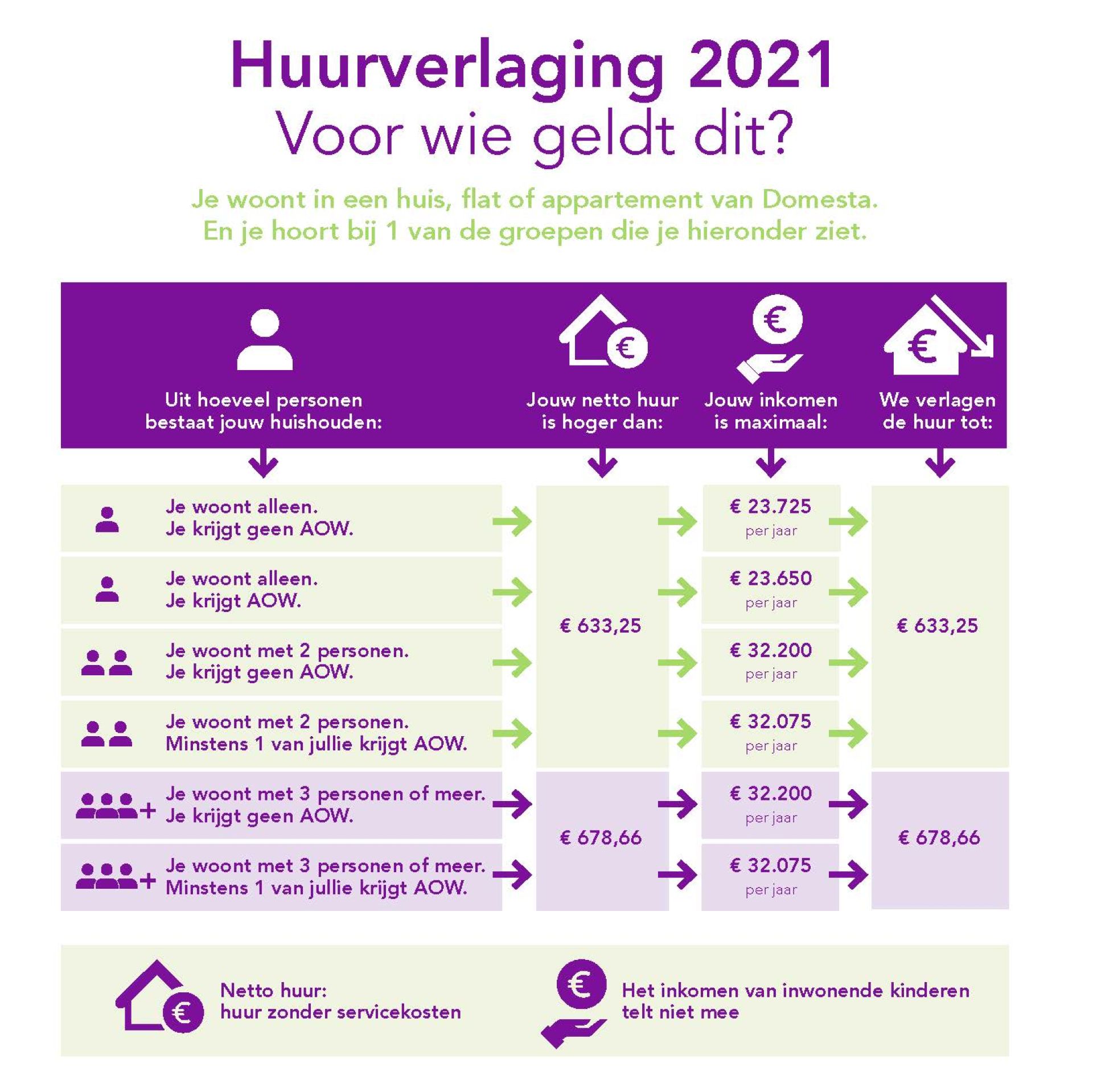 In 2021 krijgen huurders met een hoge huur en een laag inkomen eenmalig een huurverlaging. Dit staat zo in de wet. Heb jij er recht op? Dan krijg je voor 1 april bericht van ons.