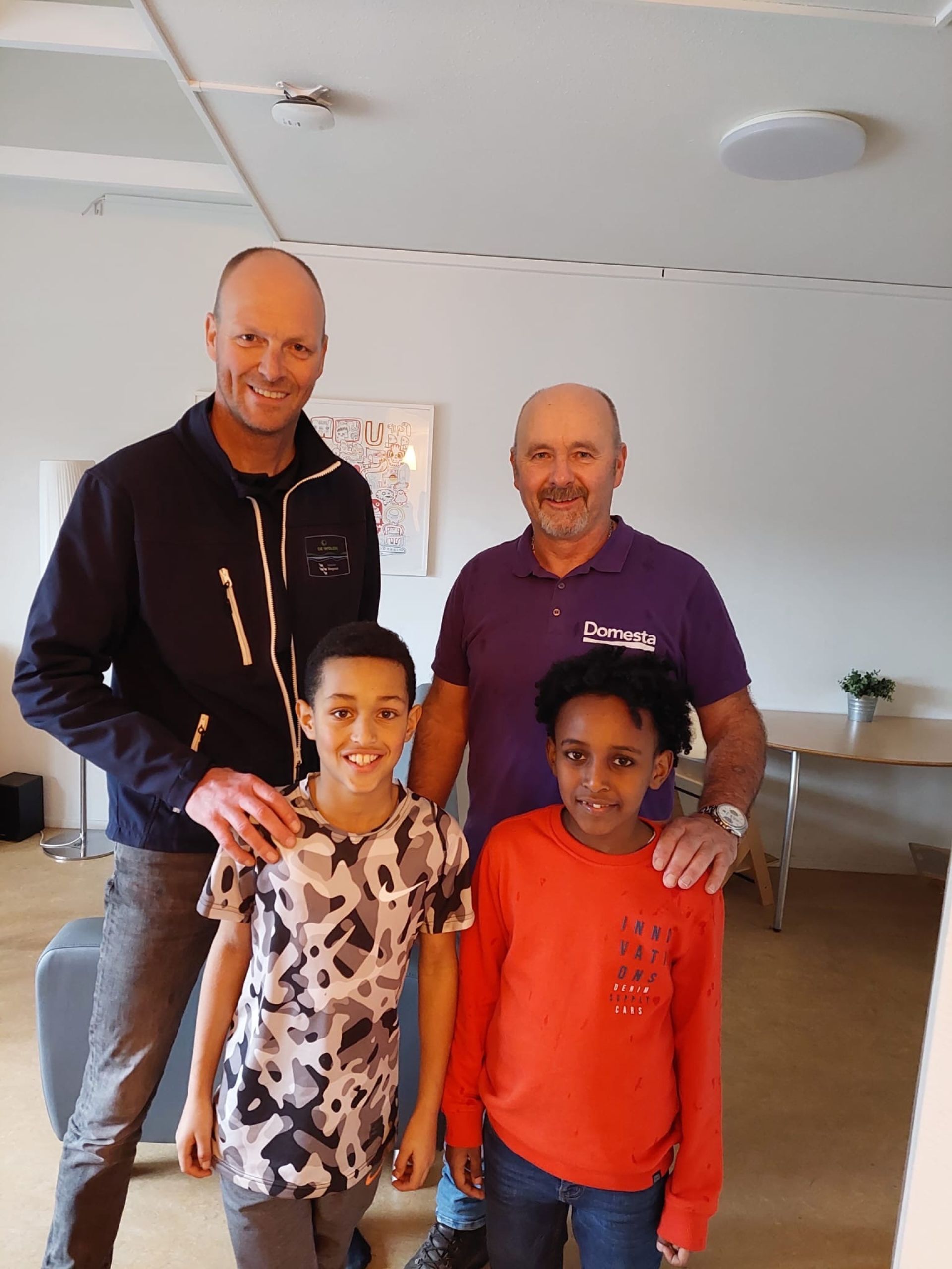 Samen met de wijkbeheerder en gebiedsregisseur van de gemeente en de wijkagent (allemaal leden van het Smederijen-team) was Wietse in het logeerhuis. “We werden enthousiast ontvangen. Natuurlijk wilde iedereen met mij (in m’n paarse Domesta-shirt) op de foto en niet met de wijkagent. Grapje hoor, de wijkagent was dé favoriet om mee op de foto te gaan” lacht Wietse.