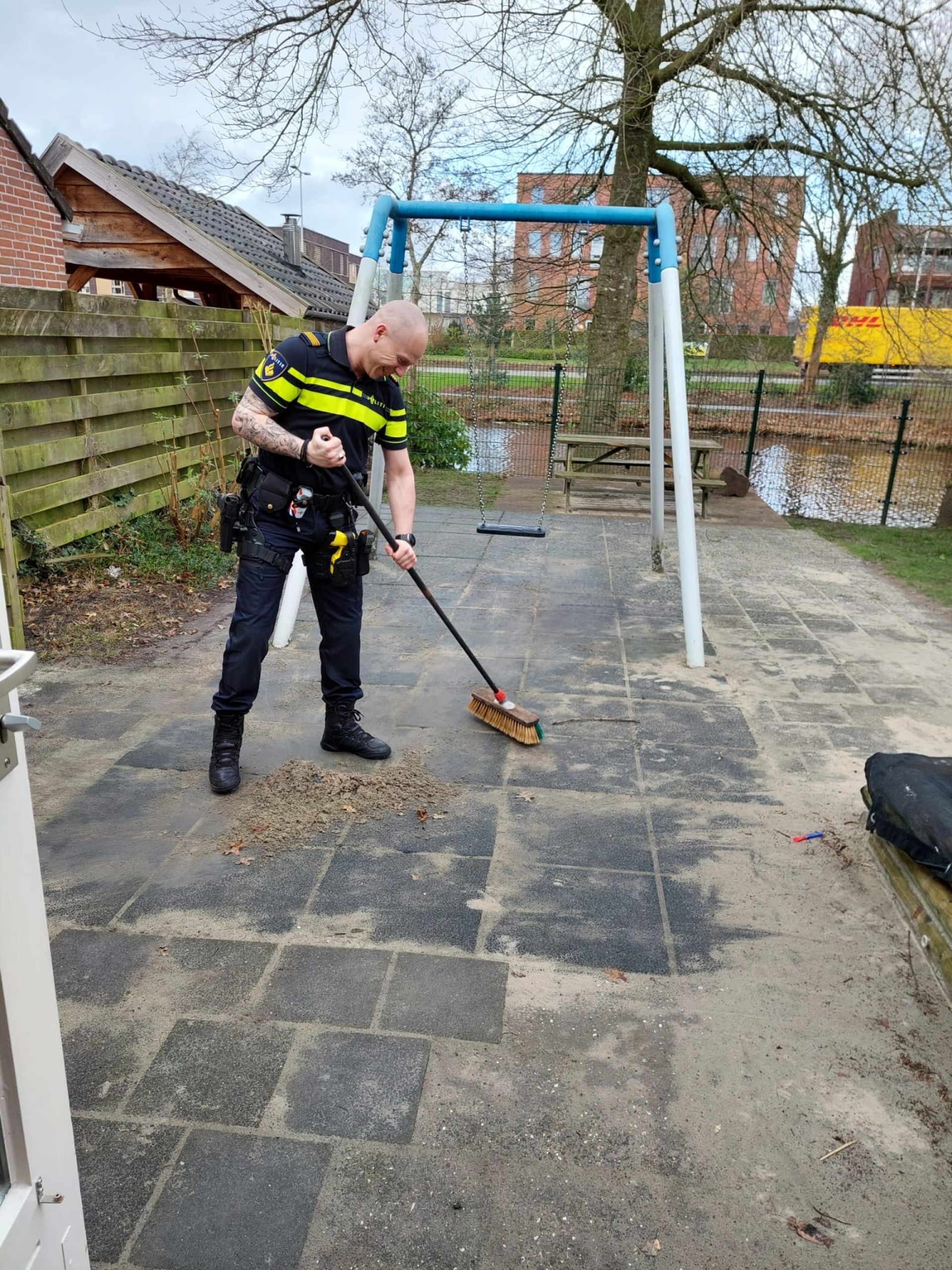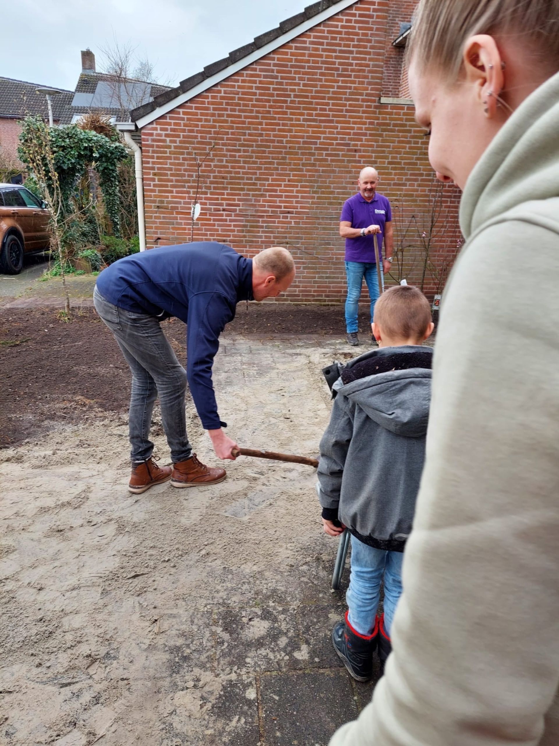 Na een rondleiding door de kinderen die wonen in het logeerhuis, moest het team toch écht aan het werk. Er was namelijk een hele waslijst met opdrachten: van het bakken van cake tot het leggen van straatwerk. Maar ook werd het speelgedeelte opgeruimd, waarbij de kinderen goed meehielpen. En er werd een pop beschilderd. “Het leggen van het straatwerk is voorbereid: samen met de wijkbeheerder van de gemeente heb ik het zand weggespit. Verder is alles klaar gemaakt zodat de tegels er zo op kunnen. Dit gaat Cosis zelf doen” vertelt Wietse.