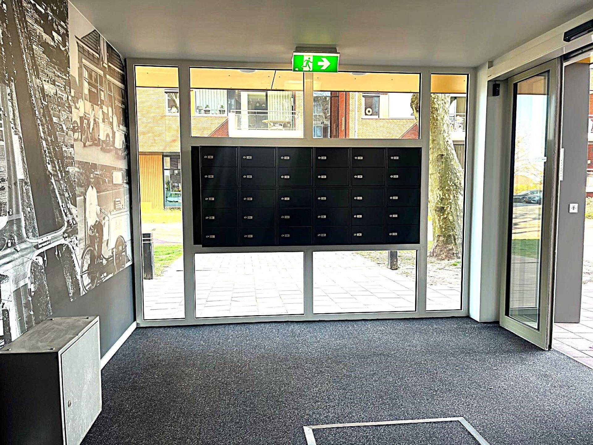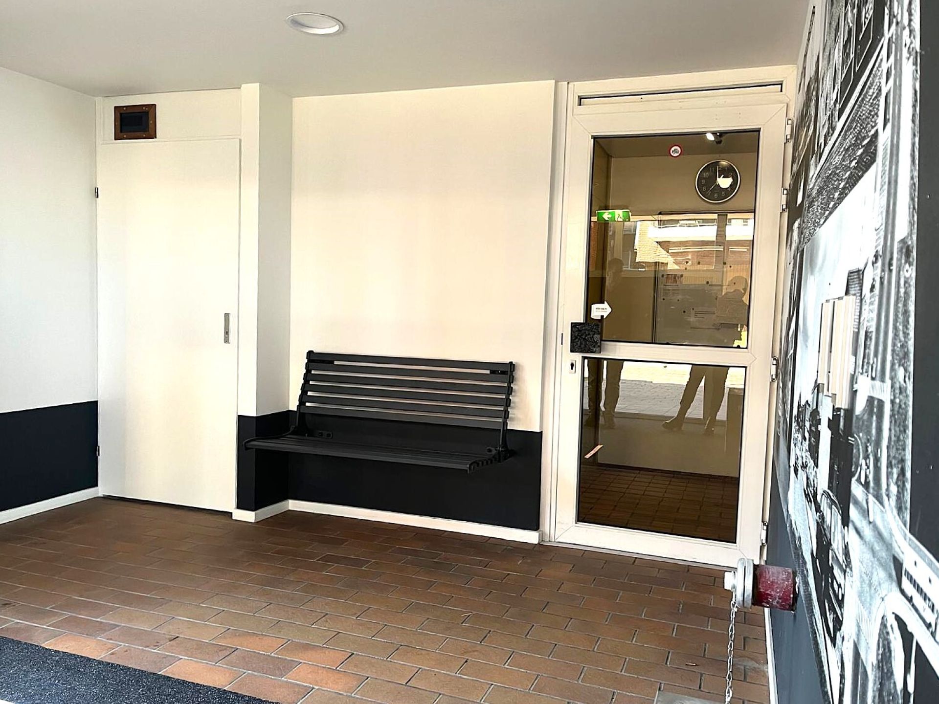Maar dat is niet de enige verandering. Alles is geschilderd in nieuwe kleuren. Er staan mooie brievenbussen. En er is een bankje in de hal gekomen: “Wel zo handig als je bijvoorbeeld moet wachten op de taxi. En het is ook gezellig. Want als je daar zit, staat er zo iemand naast die even een praatje komt maken”, vertelt 1 van de huurders. Voor de grote wand hangt eerst nog een gordijn. Wat daarachter vandaan komt, gaat iedereen zien na de opening.