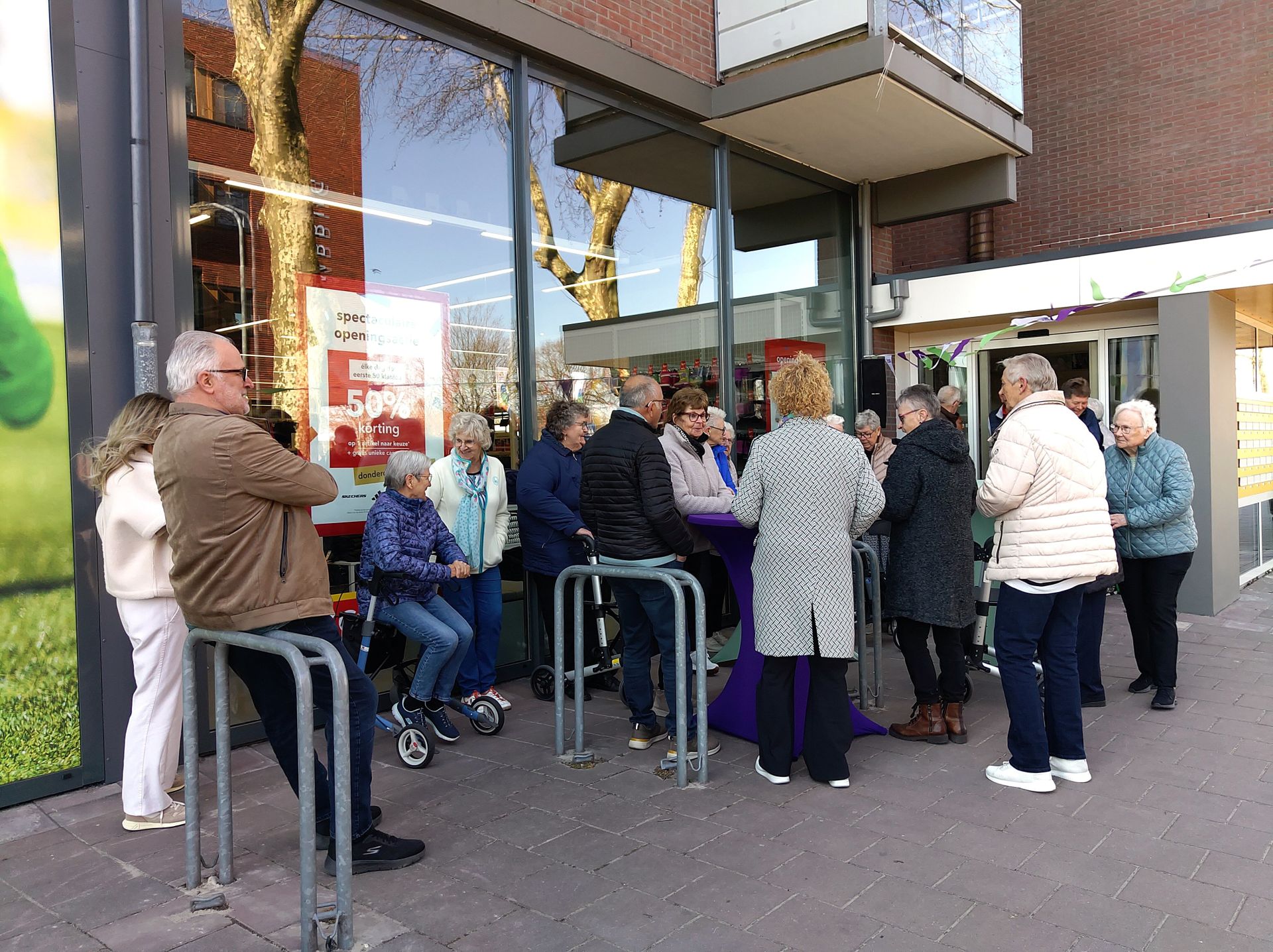 Ook al is de wind koud, toch komt iedereen naar buiten. De nieuwe hal van De Molenhoek in Klazienaveen is af en dat vieren we op 1 april met een officiële opening.